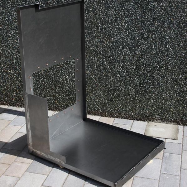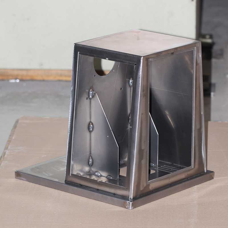 Ein Tischgehäuse zur Aufnahme eines elektrischen Antriebs. Die Blechteile sind verschweißt (WIG / MIG-MAG). Anschließend wird das Gehäuse pulverbeschichtet.