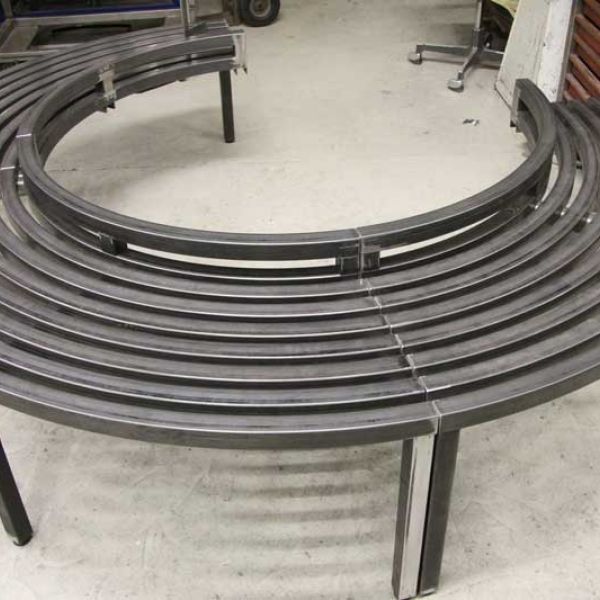 Kunden des Einkaufszentrums können diese maßgefertigten runden Sitzbänke in verschiedenen Durchmessern aus Stahl zum Verweilen nutzen.